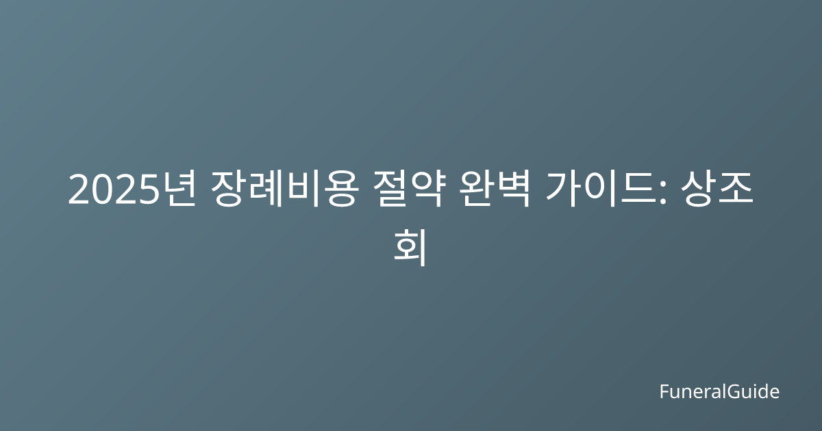 2025년 장례비용 평균과 현명한 절약 방법 완전 가이드