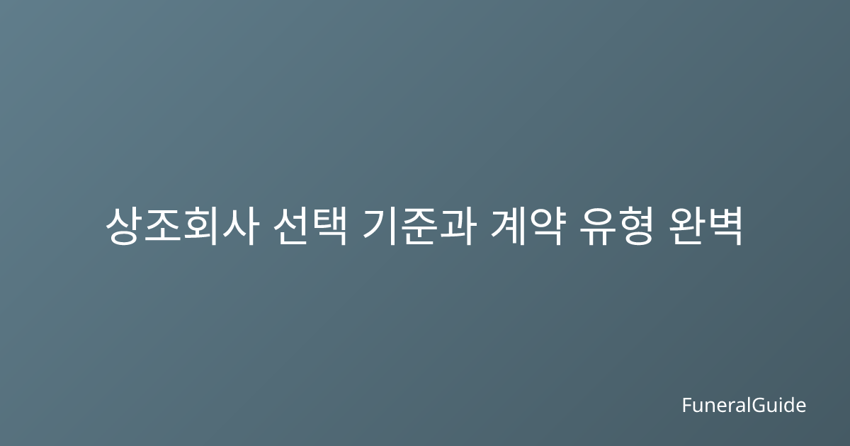 2026년 최신 상조회사 선택 기준과 계약 유형별 특징을 정리한 완벽 가이드. 재정 안정성 확인법부터 계약서 주의사항까지 실용적인 정보 제공.