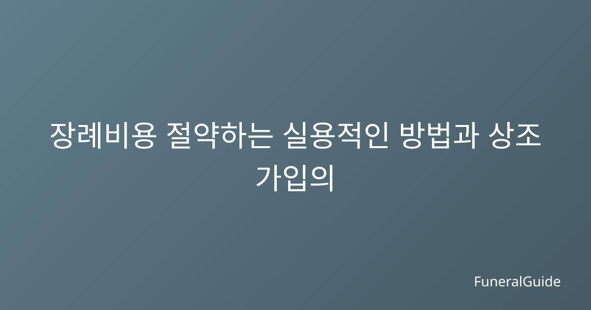 2026년 장례비용 절약을 위한 현명한 상조회 선택 가이드