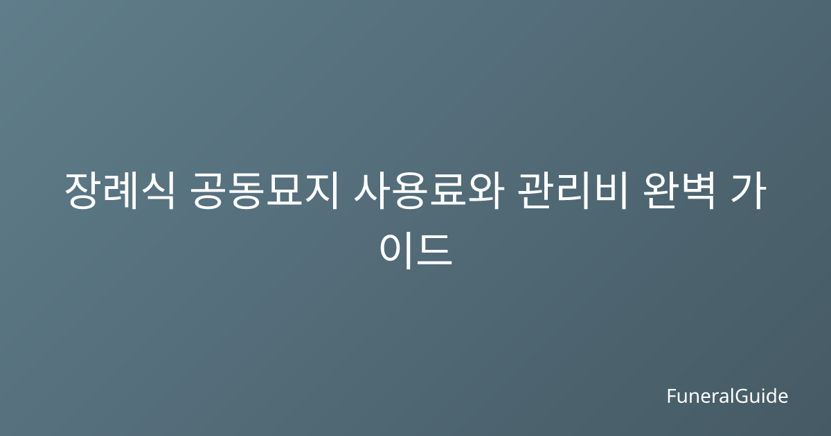 장례식 공동묘지 사용료와 관리비 완벽 가이드 2026