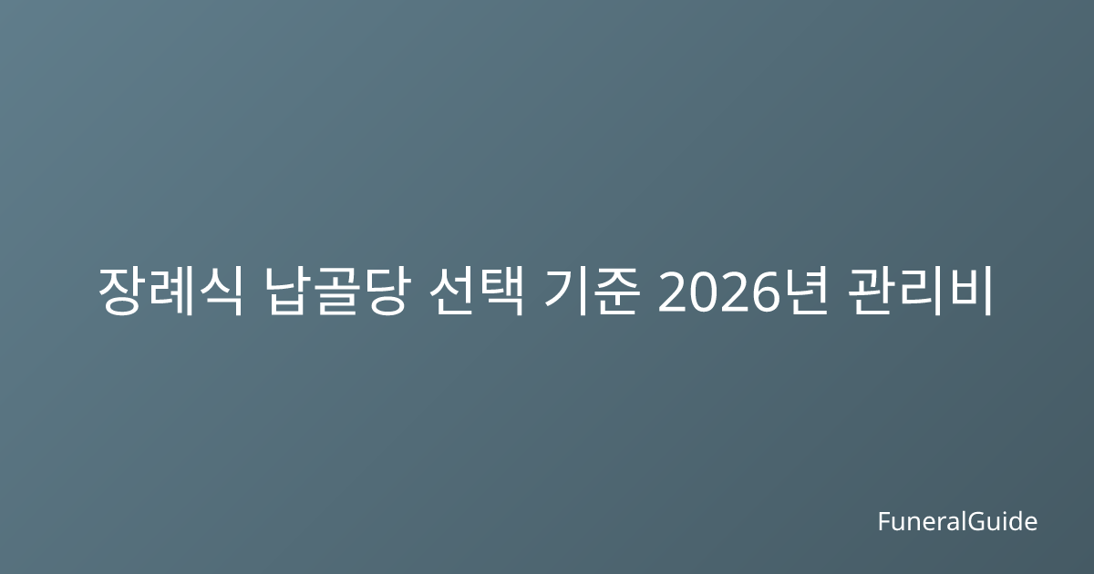 장례식 납골당 선택 기준 2026년 관리비 완벽 가이드