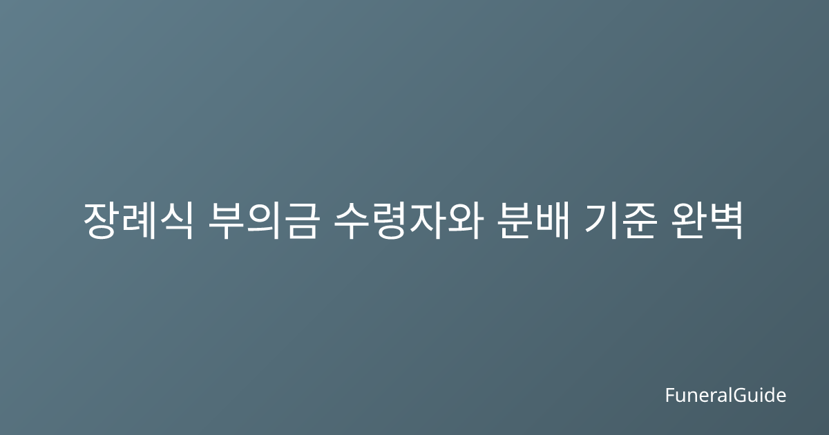 가족의 부고 소식을 받으면 장례 준비와 함께 부의금 관리 문제가 생기죠? 특히 여러 가족이 함께 장례를 치를 때 누가 부의금을 받고 어떻게 나누는지 명확한 기준이 필요해요. 이 글에서 2026년 현재 적용되는 부의금 수령자 결정과 분배 원칙을 자세히 정리해드릴게요.