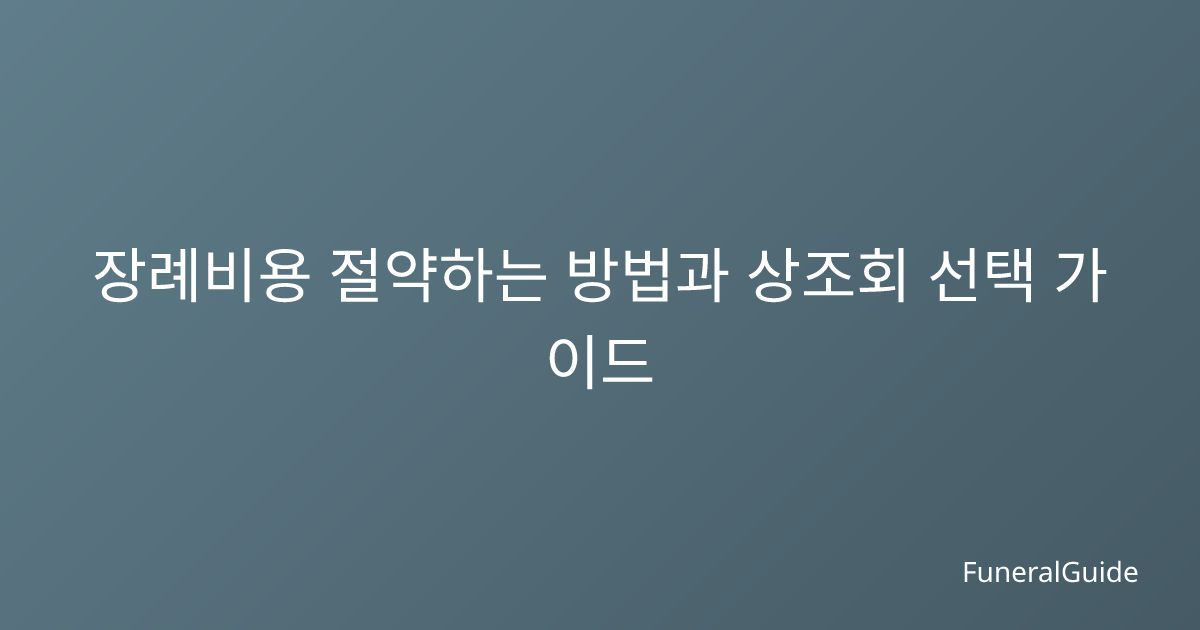 장례비용 절약하는 방법과 상조회 선택 가이드 – 2025년 최신 정보