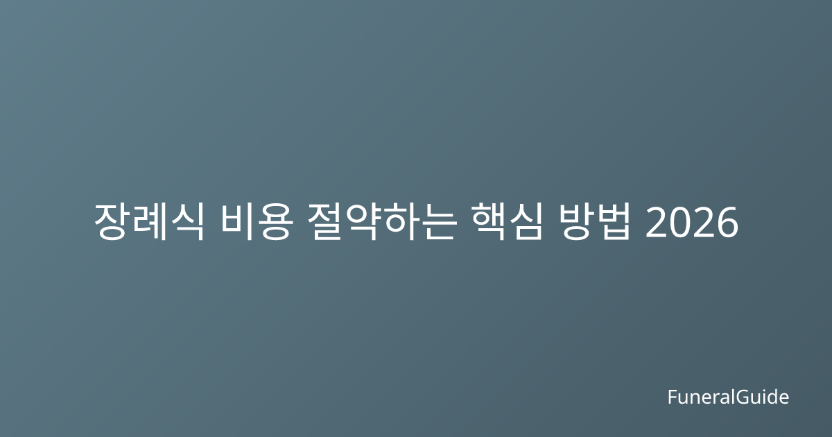 장례식 비용 절약하는 현실적인 방법 2026